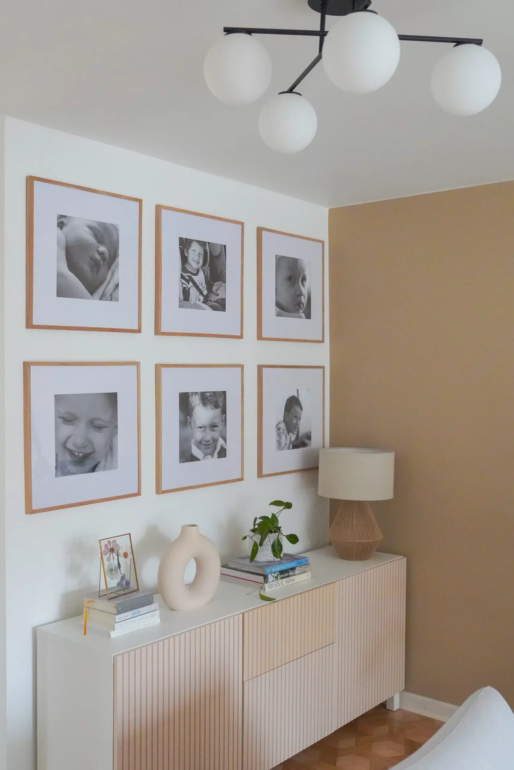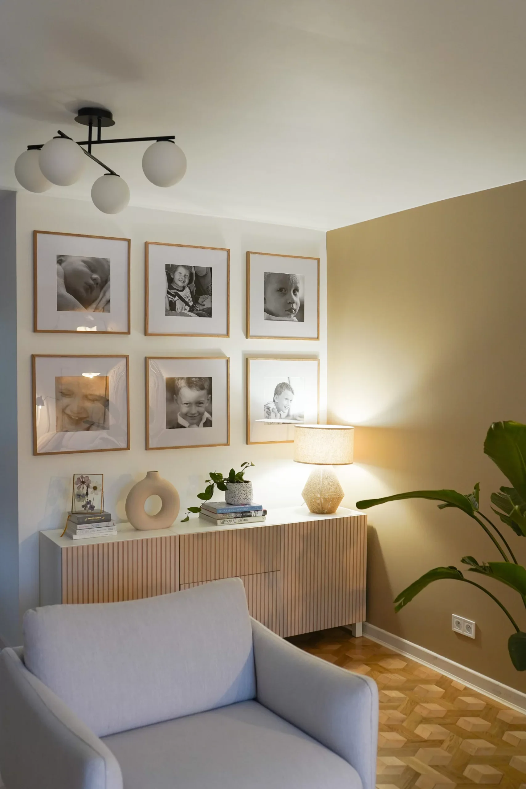 Jesteśmy normalną rodziną i robimy normalny bałagan. Kluczem do sukcesu w tym salonie okazała się być mała ilość rzeczy, minimalna ilość bibelotów, jasne kolory dodatków i super pojemna komoda BESTÅ, dzięki której w kilka minut jestem w stanie schować cały bałagan.