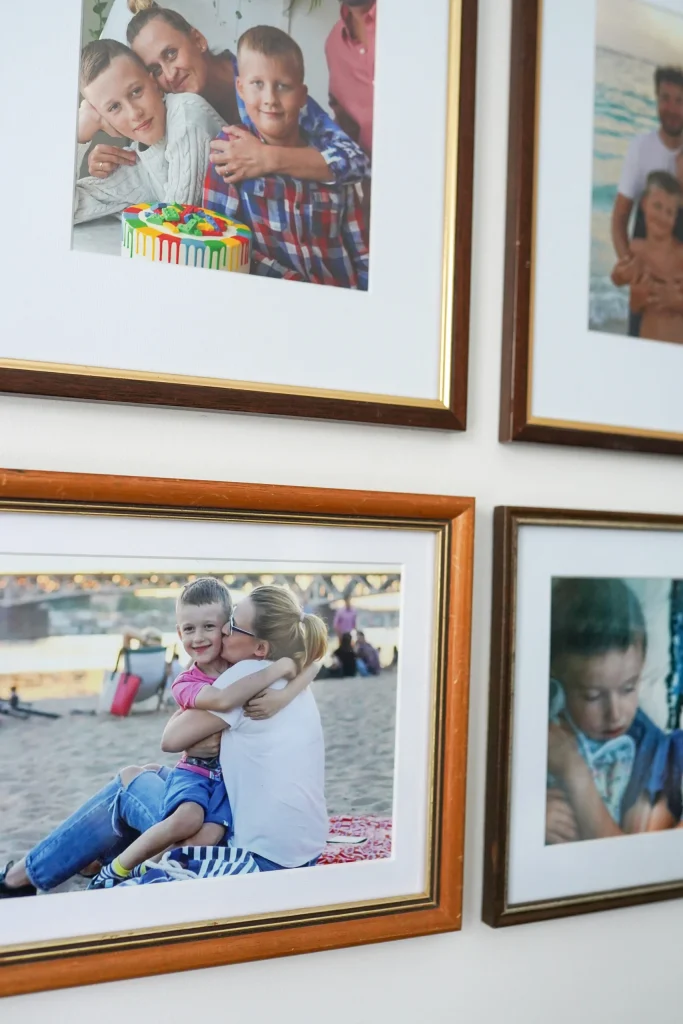 Tak wygląda gotowa galeria na ścianie. Ja osobiście uwielbiam ten vintage vibe. Podoba mi się, że ramki są różne, że niektóre są delikatnie porysowane. Do naszego domu i stylu pasują idealnie.