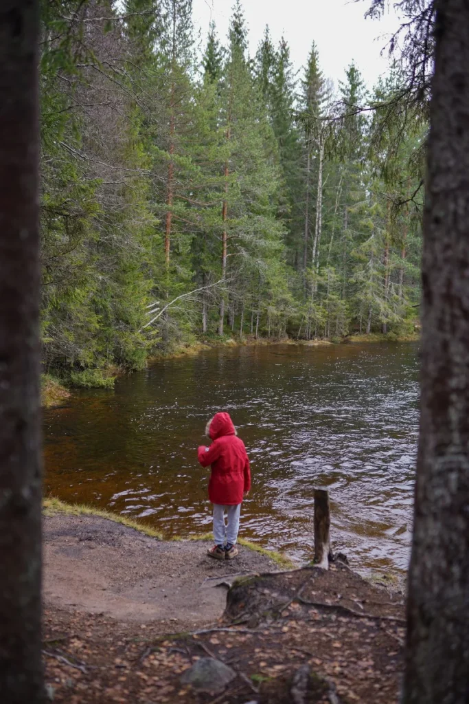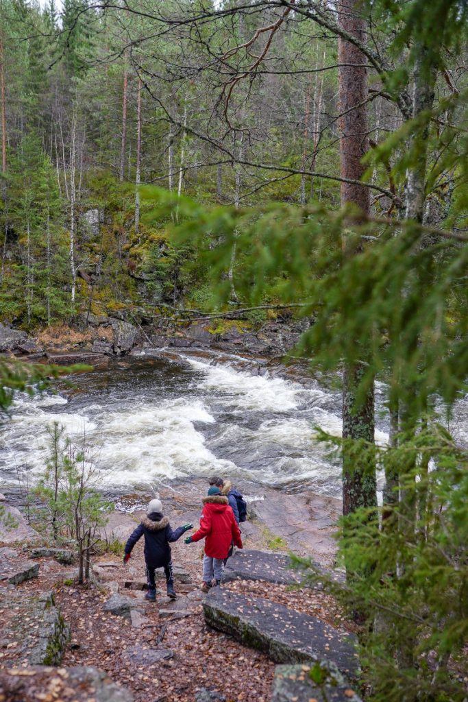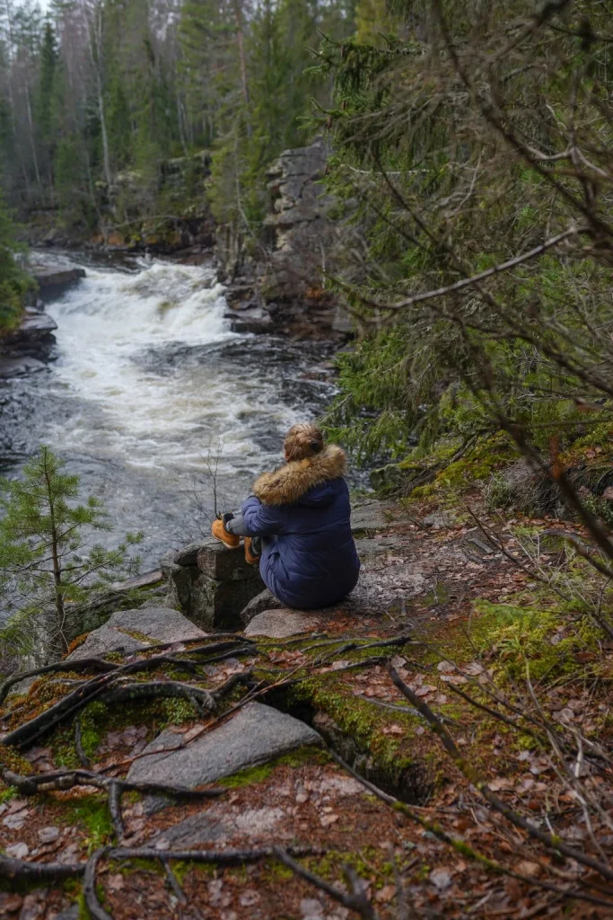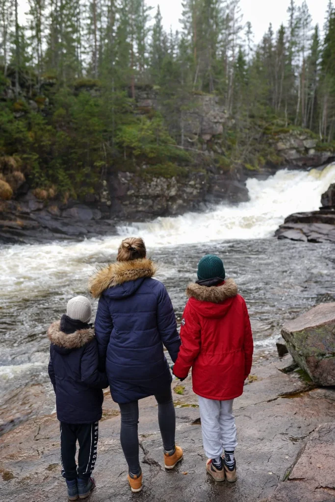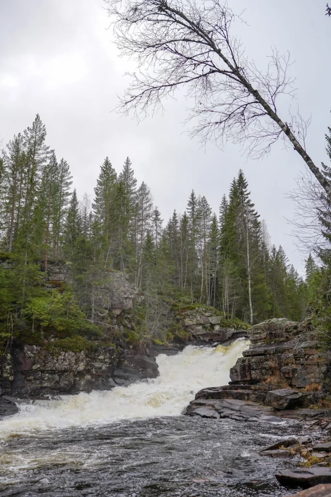 Kilka dni temu wybraliśmy się trochę dalej niż do lasu pod domem. Nie tak bardzo daleko, bo kilkanaście minut jazdy samochodem od naszego miasteczka jest wodospad Gåfossen. Latem jest tu spokojny nurt, a z rzeki wystają wielkie, płaskie kamienie, na których opalają się liczni turyści. Teraz, gdy po ulewnych deszczach woda spływa z gór, siła tego wodospadu jest onieśmielająca.