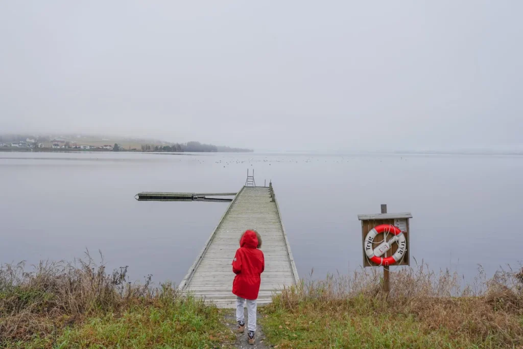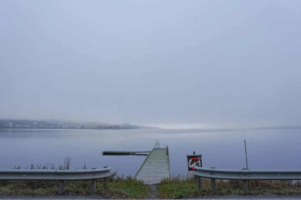 Jeszcze ostatnie spojrzenie na jezioro, które tego dnia spowite było mgłą. Latem byłam tu świadkiem przepięknej romantycznej sceny. Na molo czekała młoda dziewczyna, po którą na randkę łódką przypłynął chłopak i odpłynęli sobie randkować na sam środek. Awww 🙂