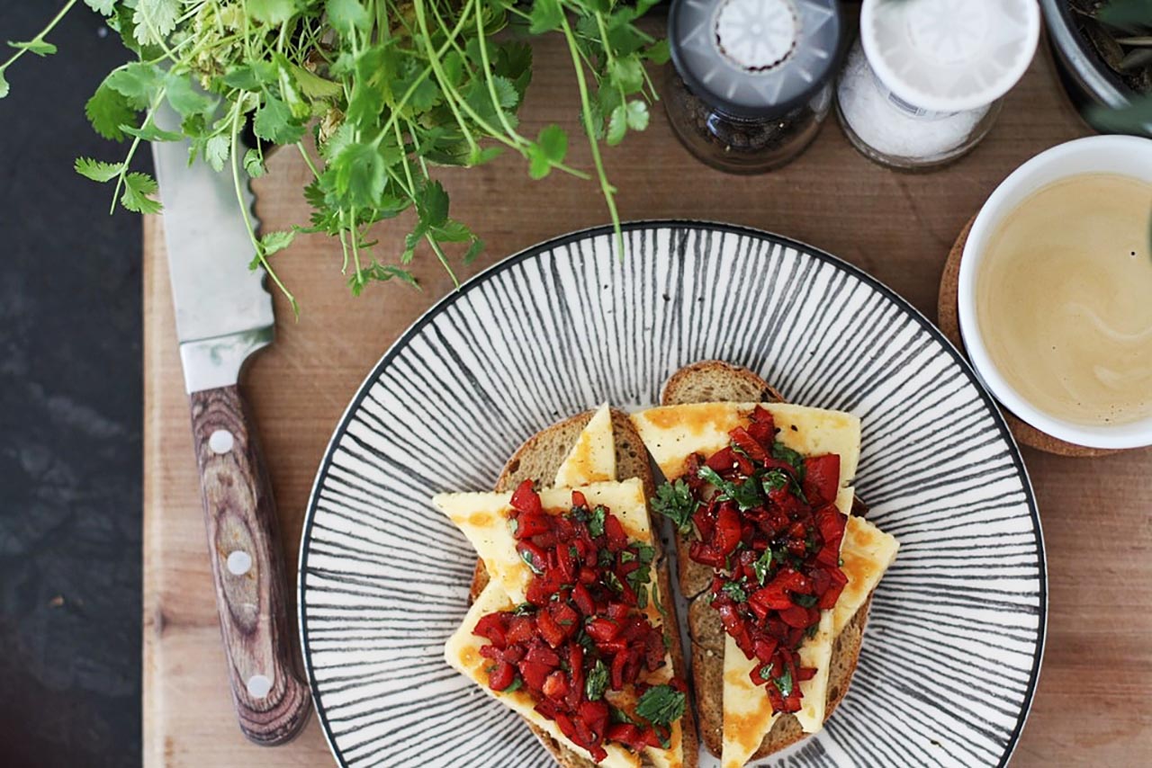 Pierwsze moje spotkanie z pieczoną papryką to były te bruschetty z serem haloumi. Przepyszne!