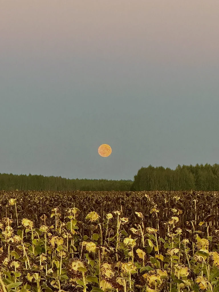 Na zakończenie wschód księżyca w pełni nad Podlasiem. Taki właśnie widok pożegnał mnie, gdy ruszałam już w stronę Lublina.