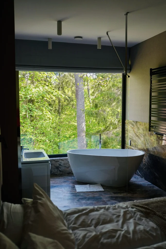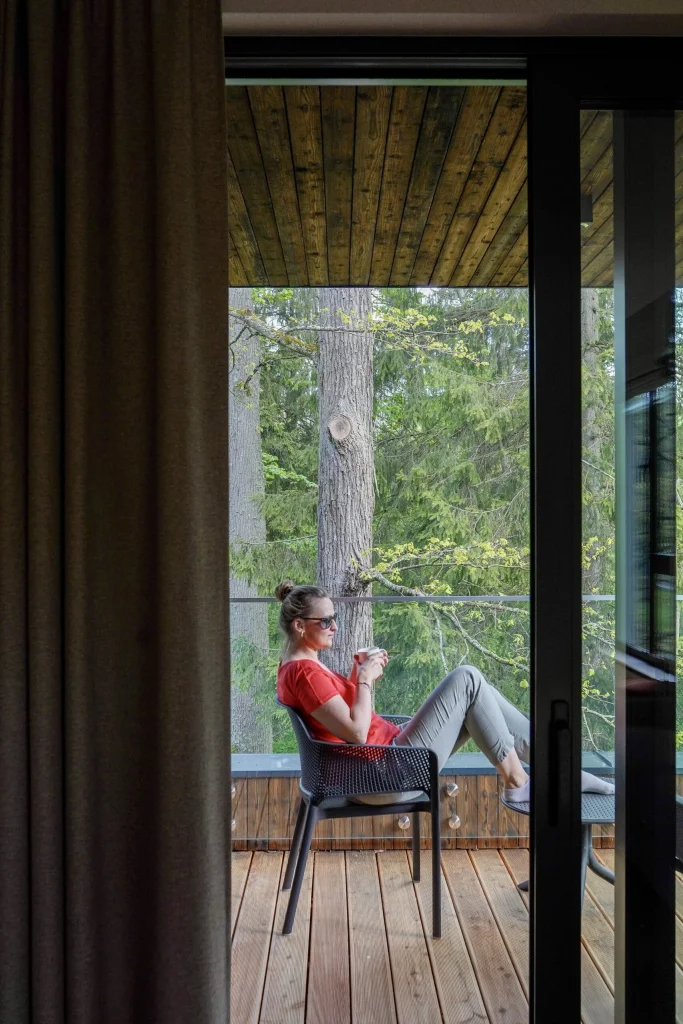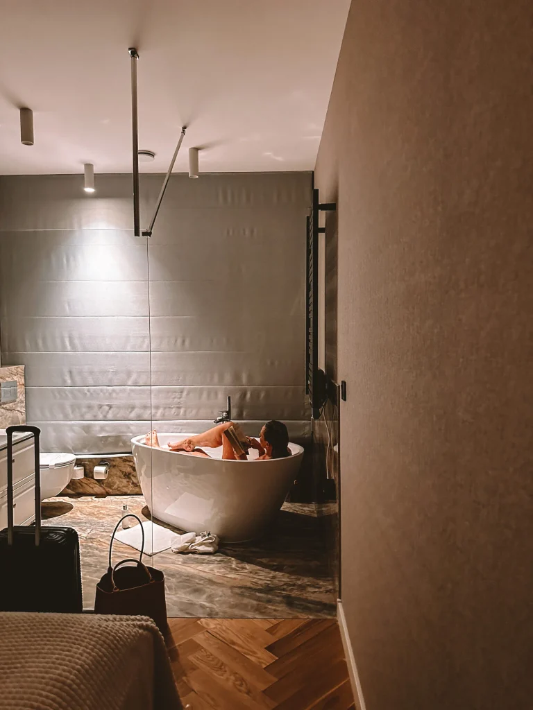 Ja podczas jednej z moich wizyt na Podlasiu nocowałam w Enklawie Białowieskiej. Myślę, że to miejsce, które warto sobie zapisać. To kompleks butikowych, w pełni wyposażonych mieszkań, z przeszklonymi ścianami wychodzącymi wprost na Puszczę Białowieską. Pokój z wanną w sypialni robi naprawdę ogromne wrażenie. To miejsce doskonałe na dłuższy wypoczynek we dwoje lub z dziećmi, bo na terenie Enklawy są baseny, świetnie wyposażony plac zabaw i tyrolka z trasami o różnym stopniu trudności. Do dyspozycji gości jest restauracja serwująca dania kuchni regionalnej. Naprawdę ciekawe, komfortowe i pięknie urządzone miejsce, które również może być super bazą wypadową do dalszych wycieczek. Ja chętnie bym tu wpadła raz jeszcze na randkę albo weekend z przyjaciółkami i tym razem wynajęłabym pokój z sauną.
