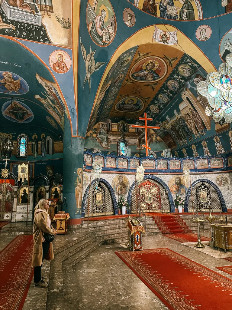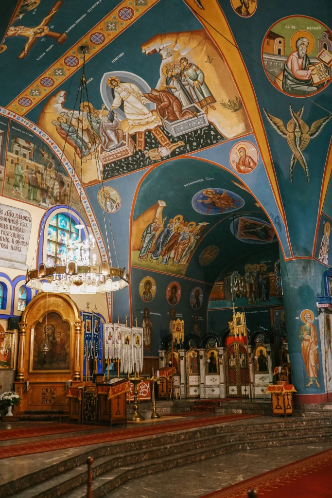 Sobór jest unikatem na skalę całego kraju. Ma aż siedem ołtarzy, a niesamowite polichromie na ścianach zostały wykonane przez greckiego malarza Dymitriosa Andonopulosa. Ogromne wrażenie robi też wielki, witrażowy żyrandol w kształcie równoramiennego krzyża.
