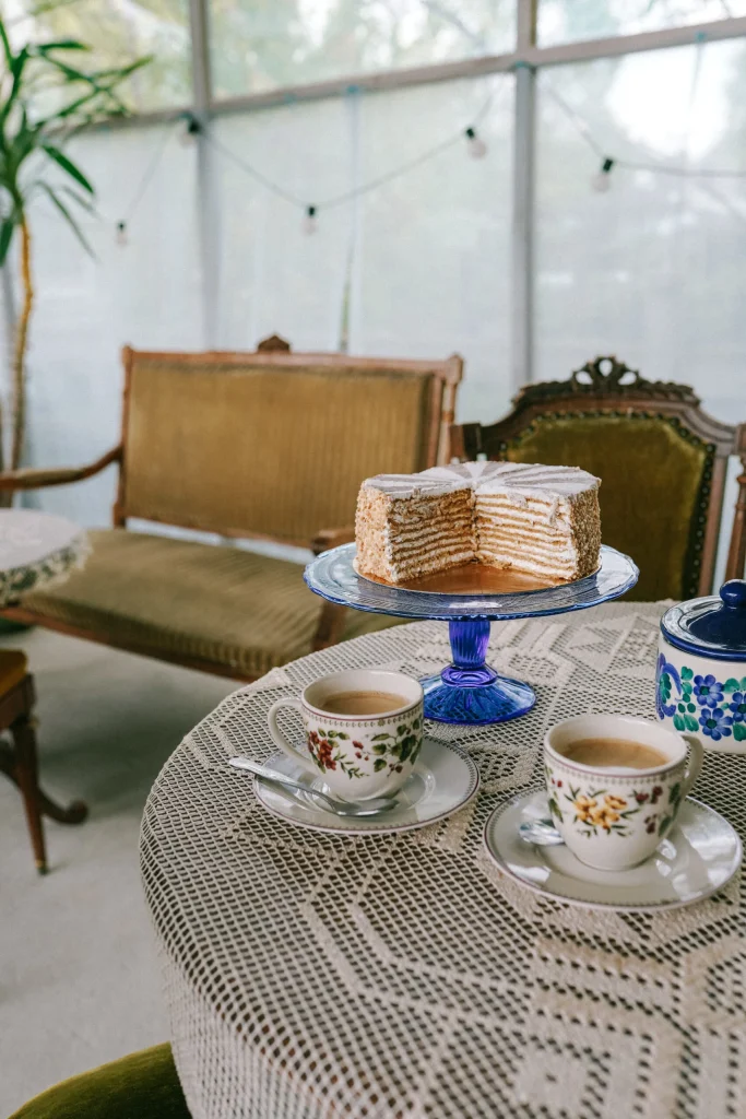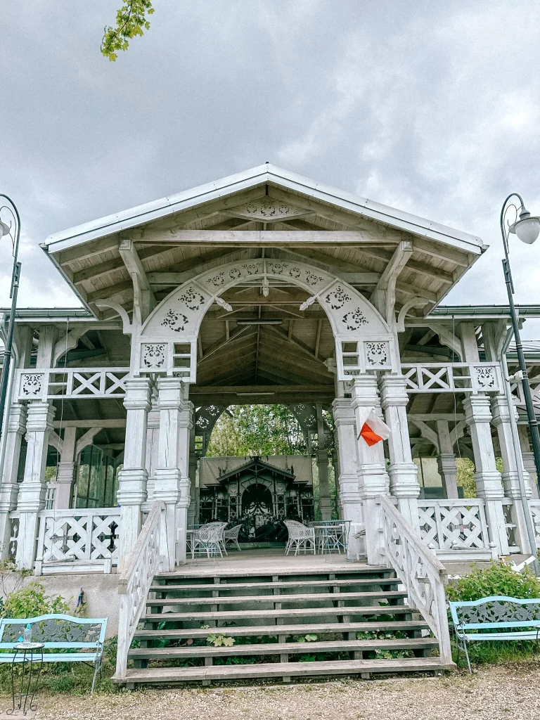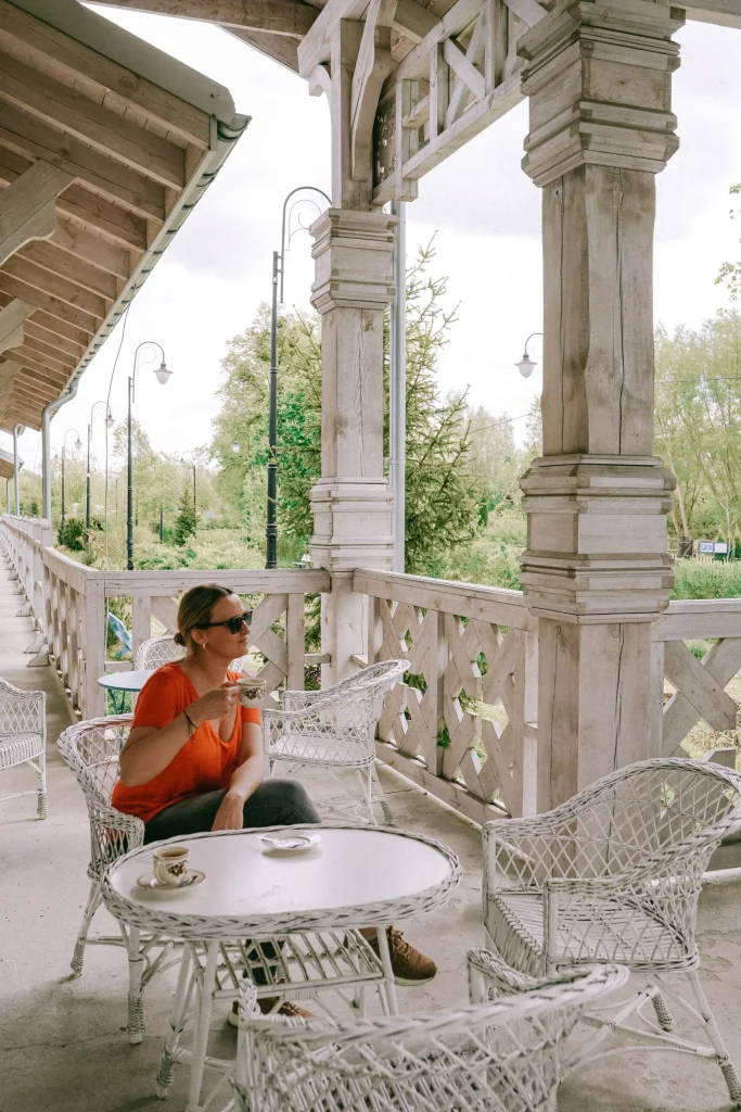 Naprawdę warto odwiedzić Cafe Frog, która mieści się w zabytkowej Stacji Kolejowej Białowieża Pałac. Z informacji w Internecie wynika, że kawiarnia jest tymczasowo zamknięta. Kryzys turystyczny związany z aktualną sytuacją polityczną i nieustannym straszeniem przez media, niestety znacząco wpłynął na zamykanie się podlaskich biznesów. Mam ogromną nadzieję, że ta piękna kawiarnia prowadzona przez przemiłą Panią Olimpię wróci do Białowieży na wiosnę. Warto zatrzymać się tutaj na kawę, herbatę, racuchy i domowe ciasta. A szczególną uwagę według mnie należy poświęcić ciastu o nazwie „Marcinek”, które zostało wpisane na Listę Produktów Tradycyjnych. Marcinek to przepyszny tort przekładany maślano – śmietanowym kremem. Proste składniki, doskonale wyważony smak i niezwykle pracochłonne w wykonaniu ciasto. To był najlepszy deser, jaki zjadłam na Podlasiu.