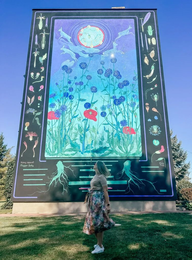 Pozostając w Hajnówce, zachęcam do zobaczenia jednych z najpiękniejszych murali, jakie dotąd widziałam. Namalowała je Mona Tusz, artystka z Katowic. Murale nawiązują do puszczańskiej przyrody i kultury regionu. Mnie szczególnie spodobał się dodatek kawałeczków luster, które pięknie odbijają światło. To małe dzieła sztuki. Dowiedziałam się, że spod pędzla tej artystki ma wyjść kolejny mural w Hajnówce, przedstawiający Simonę Kossak w otoczeniu zwierząt. O Simonie pisałam w tym moim poście.