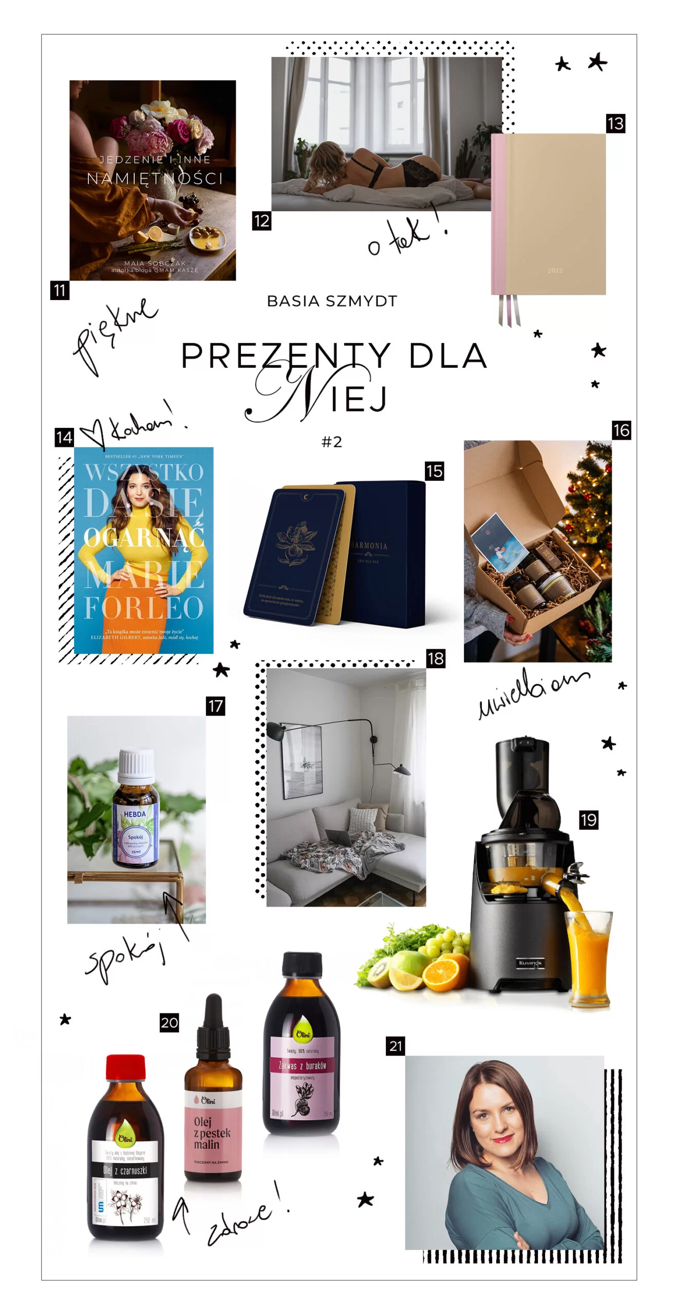Prezenty w moim tegorocznym prezentowniku wybrałam z różnych powodów, ale wszystkie mają cechę wspólną – JAKOŚĆ. Im jestem starsza tym bardziej wolę kupić jedną, porządną rzecz zamiast 10 mniejszych, które za chwilę się rozpadną. Znajdziesz w nim zatem produkty marek, z którymi na przestrzeni lat współpracowałam, i za jakość których ręczę. Są też przedmioty, które ja albo moi bliscy znaleźliśmy pod choinką i tak się nam spodobały, że dziś polecam je Tobie.
