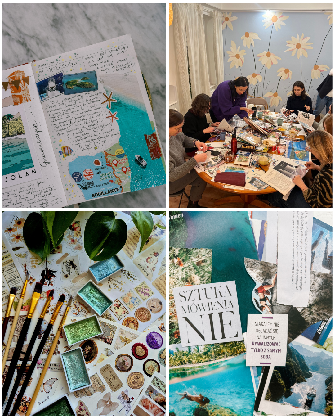 Coraz częściej słyszymy o tym, jak ważne jest robienie różnych rzeczy ręcznie: dla spokoju umysłu i dla relaksu. Nieustannie to polecam i dodam jeszcze, że równie ważne jest, by robić to w miłym towarzystwie i starać się być częścią społeczności. Warto jest umówić się raz na jakiś czas z przyjaciółką lub siostrą, by wspólnie coś tworzyć. A jeśli nie mamy rodzeństwa czy bliskich przyjaciół, pokusić się o założenie własnej grupy wsparcia, korzystając np. z mediów społecznościowych czy zawieszając ogłoszenie na tablicy korkowej w bibliotece. Ja przeprowadzając się do Lublina ogłosiłam nabór do założonego przeze mnie Klubu Książki. Na początku klub miał być okazją do rozmawiania o książkach, a na przestrzeni ostatnich kilku lat zamienił się w miejsce, w którym rozmawiamy na tematy wszelakie, organizujemy sobie różne wyjścia, warsztaty i dużo się śmiejemy. W marcu z okazji Dnia Kobiet urządzamy sobie sesję fotograficzną. Podczas ostatniego spotkania robiłyśmy mapy marzeń, czyli tzw. vision board i omawiałyśmy książkę „Akuszerki”.